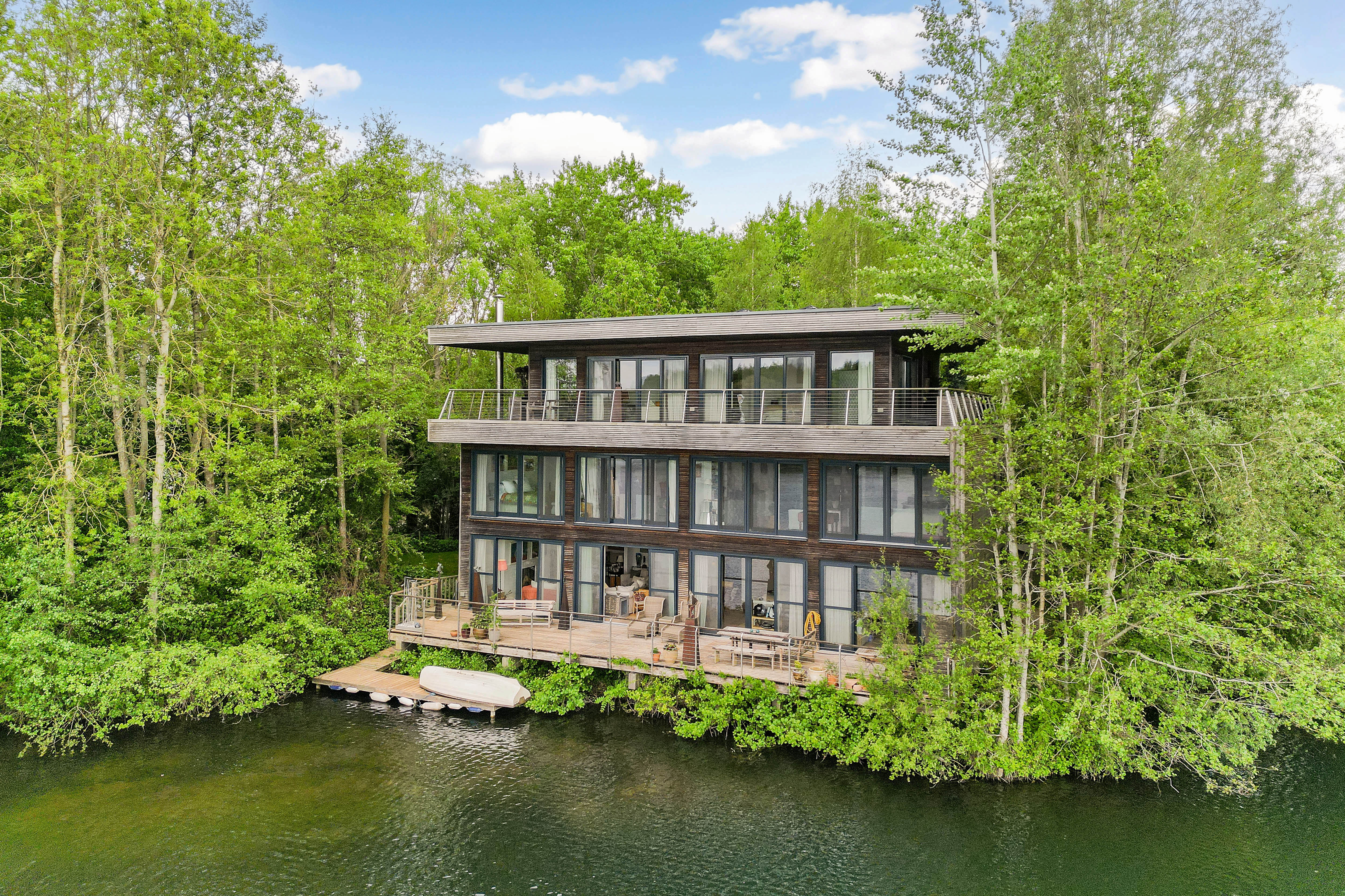 The open-plan living spaces flow seamlessly onto the private decking, where guests can enjoy morning coffee overlooking the water, long alfresco lunches, or peaceful evenings as the sun sets across the lake.